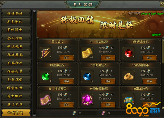 活动说明:活动期间,可使用充值回馈卷和消费回馈卷兑换大量奖励