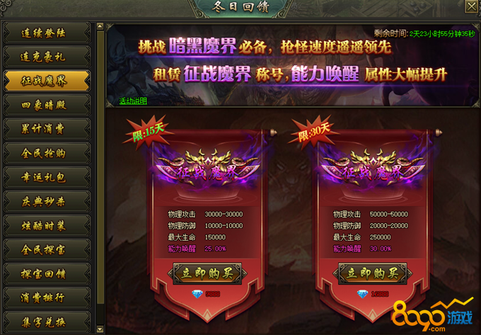 活动说明:活动期间,租赁征战魔界称号,能力唤醒属性大幅提升!