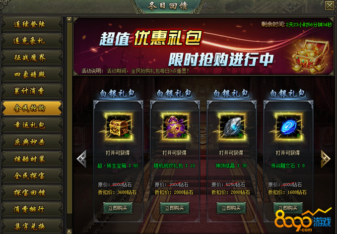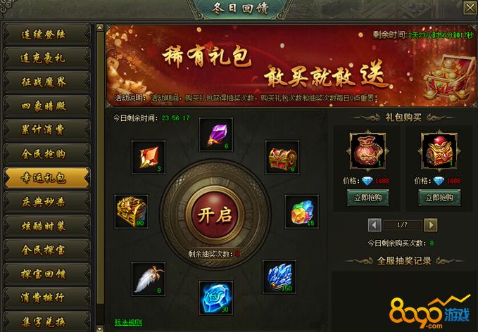 活动说明:活动期间,购买礼包获得抽奖次数,购买礼包次数和抽奖次数每日0点重置。
