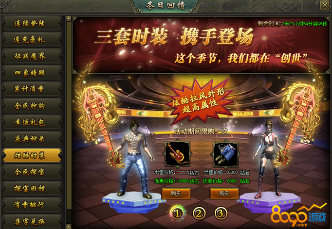 活动说明:活动期间,绝版时装限时出售,炫酷拉风外型、超高属性都在这里!
