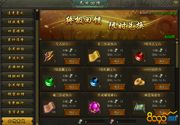 活动说明:活动期间,可使用充值回馈卷和消费回馈卷兑换大量奖励