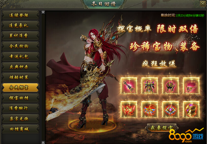 活动说明:活动期间,龙之宝藏产出圣装的概率限时翻倍,极品圣装、珍稀宝物大放送!