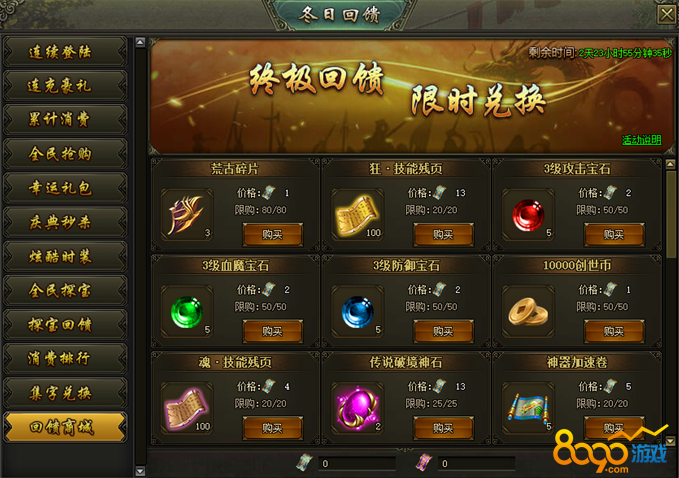 活动说明:活动期间,可使用充值回馈卷和消费回馈卷兑换大量奖励