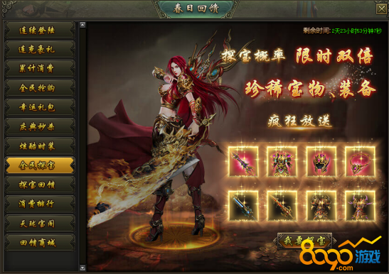 活动说明:活动期间,龙之宝藏产出圣装的概率限时翻倍,极品圣装、珍稀宝物大放送!