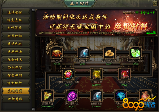 活动说明:活动期间,完成天珑宝阁任务可获得大量奖励!