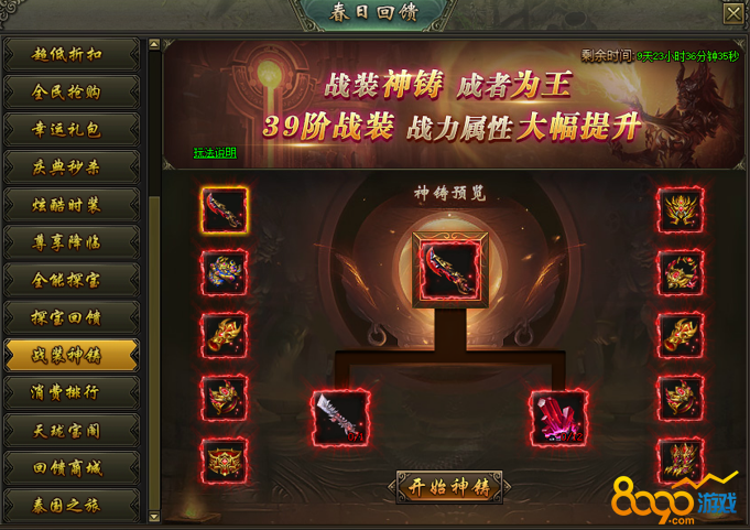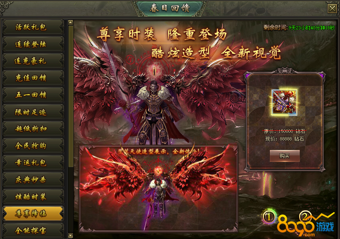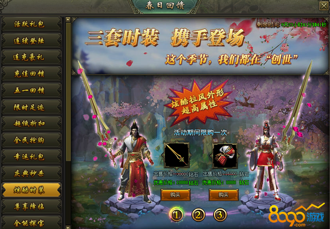 活动说明:活动期间,绝版时装限时出售,炫酷拉风外型、超高属性都在这里!