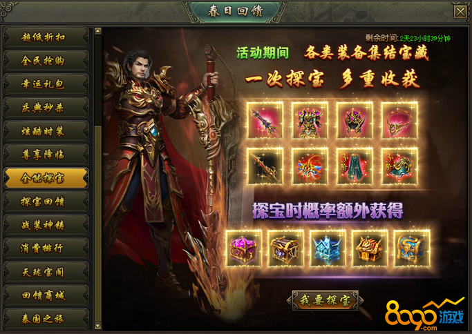 活动说明:活动期间,各类装备集结宝藏,一次探宝多重收获