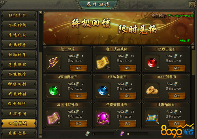 活动说明:活动期间,可使用充值回馈卷和消费回馈卷兑换大量奖励