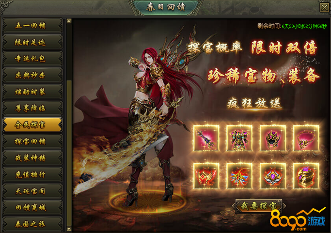活动说明:活动期间,龙之宝藏产出圣装的概率限时翻倍,极品圣装、珍稀宝物大放送!
