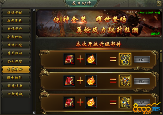 活动说明:活动期间,诛神金装耀世登场,穿戴之后战力飙升