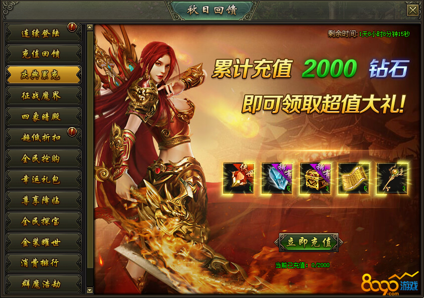 活动说明:活动期间,累计充值指定额度即可领取超值大礼!