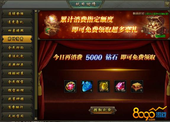活动说明:活动期间内累计消费钻石数达到指定额度可领对应奖励