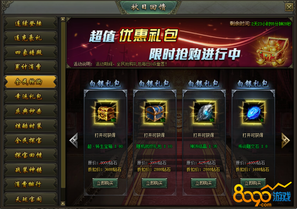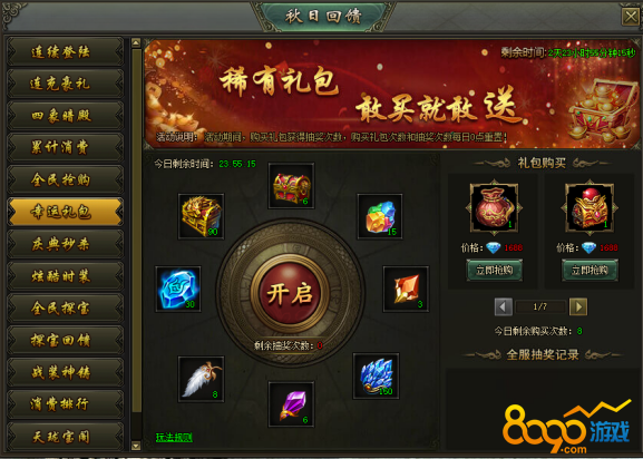 活动说明:活动期间,购买礼包获得抽奖次数,购买礼包次数和抽奖次数每日0点重置