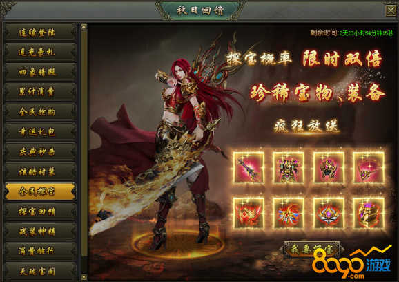 活动说明:活动期间,龙之宝藏产出圣装的概率限时翻倍,极品圣装、珍稀宝物大放送!