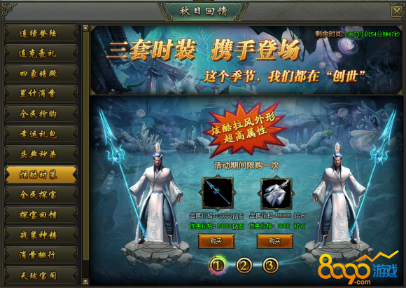 活动说明:活动期间,绝版时装限时出售,炫酷拉风外型、超高属性都在这里!