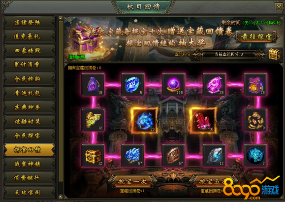 活动说明:活动期间,龙之宝藏每探宝十次赠送1个宝藏回馈卷,可继续抽大奖