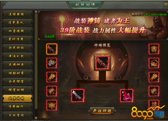 活动说明:活动期间,限时开放39阶装备合成,战力疯狂提升