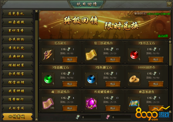 活动说明:活动期间,可使用充值回馈卷和消费回馈卷兑换大量奖励