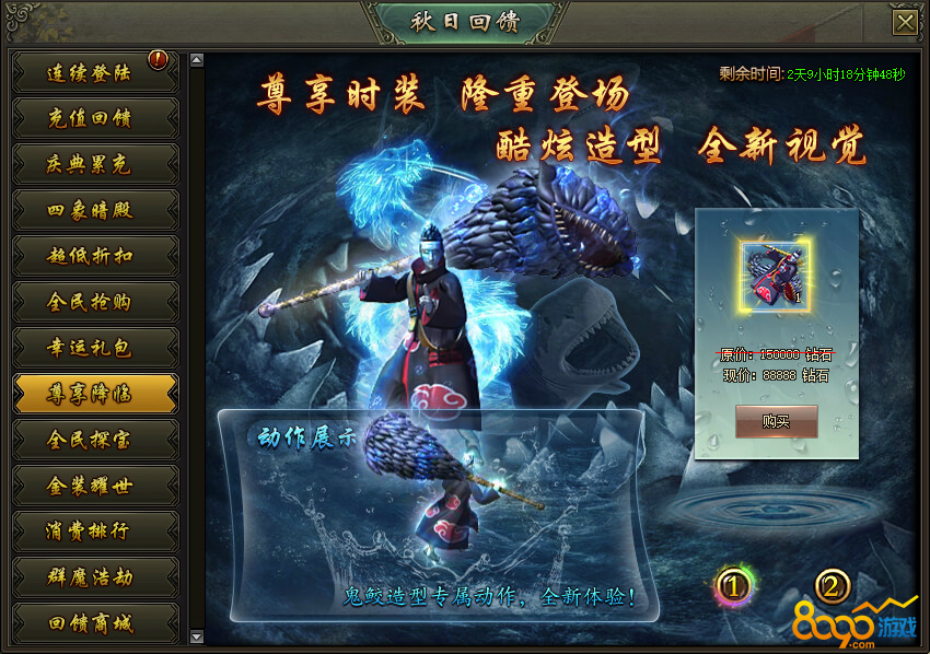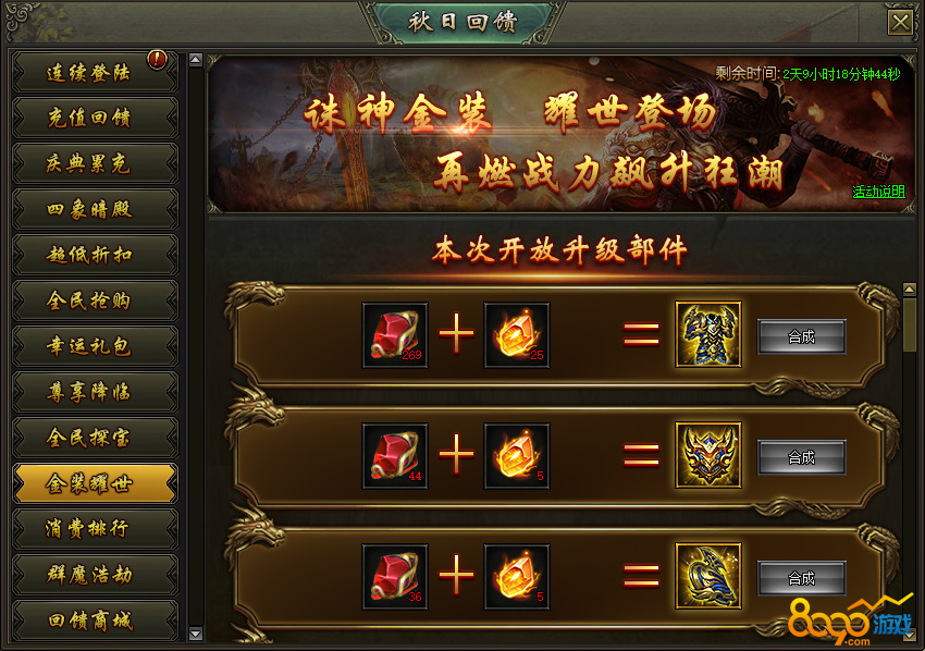 活动说明:活动期间,诛神金装耀世登场,穿戴之后战力飙升