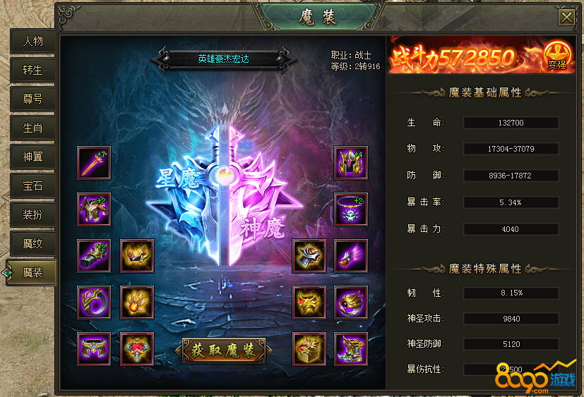 (1)角色达到500级开启魔装系统,可点击“角色—魔装”页签打开魔装界面