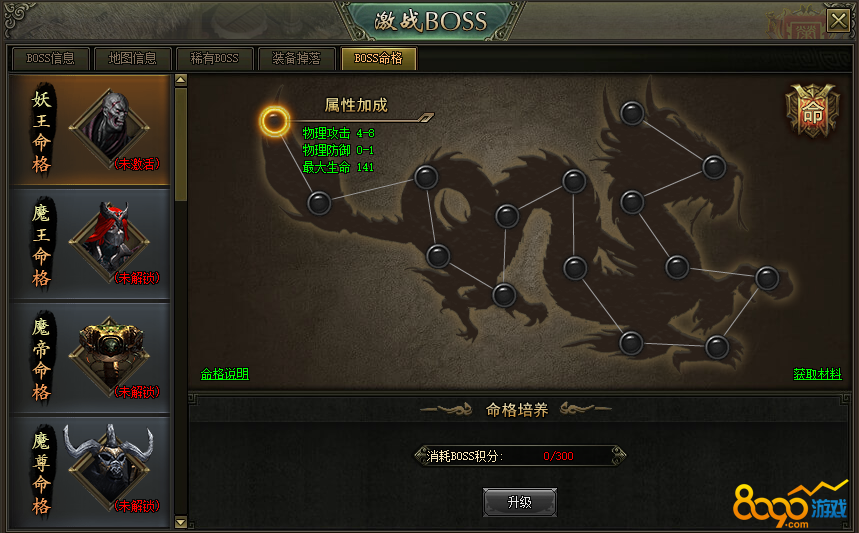 (2)升级命格消耗BOSS积分,命格达到8阶以后,升级需额外消耗创世币