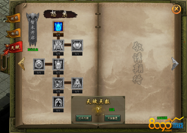 2)怒系天赋主要为防御系天赋,激活怒系天赋可获得新技能“霸体”:一定时间内减少受到的伤害并免疫石化效果