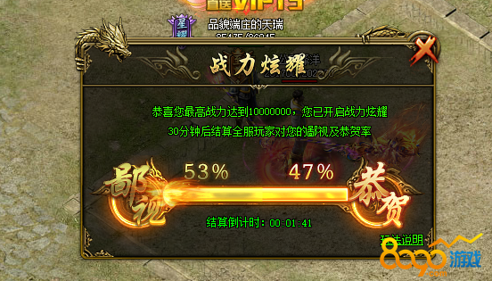 (5)炫耀时间结束后,得出恭贺、鄙视的%占比结果,若恭贺大于鄙视则花费钻石全额返还,若恭贺小于鄙视则花费钻石不再返还