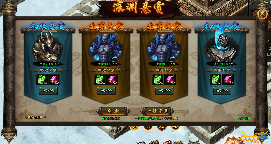 (2) 可在封魔古都NPC深渊悬赏处接取任务,击杀各种BOSS