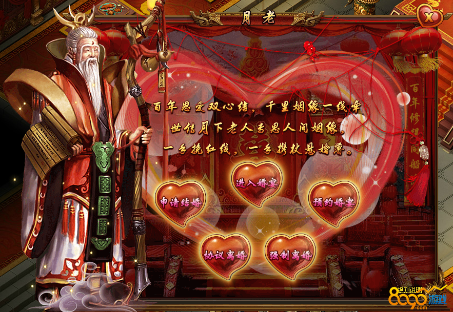 (4) 预约婚宴:求婚成功后,可通过到月老处进行婚宴预约,婚宴等级不同赠送价值不同的礼包。已预约婚宴并未成功办理的,不可以申请离婚