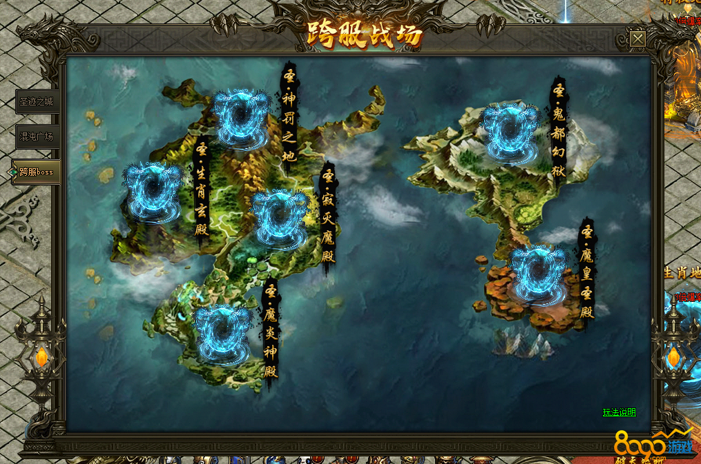 (2)不同跨服BOSS地图进入所需开服天数及角色等级不同