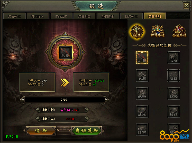 (2)装备追加包含:战装追加、神饰本源追加和圣装本源追加