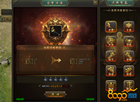 (2)2阶及以上金装可消耗对应部位的创世金卷进行淬炼,增加大量属性