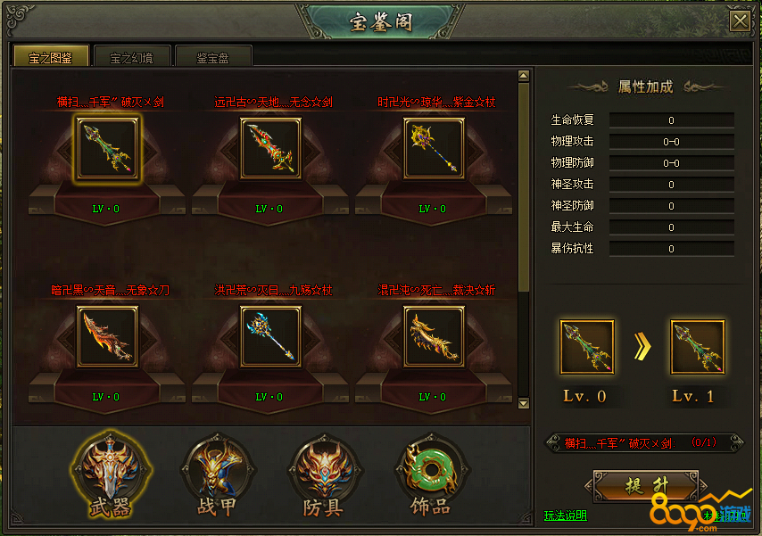 (3)宝之图鉴:玩家可在宝之图鉴提交30阶及以上装备来提升对应装备图鉴的等级,增加大量属性