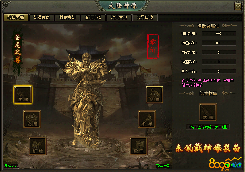 (2)击杀野外BOSS均有几率掉落大陆神像的装备