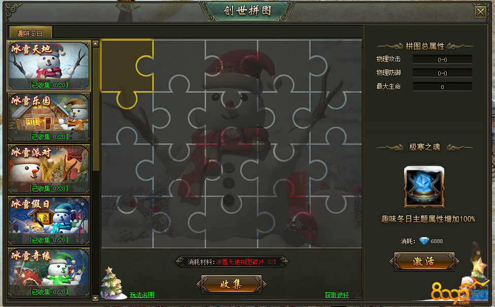 (2)拼图碎片可在雪人王国地图内做任务,泡温泉,杀怪获得