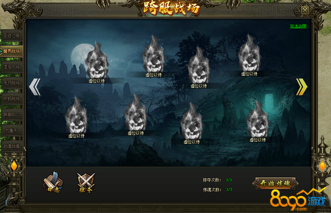 (2)魔界战场每天10点-22点开启,玩家可在魔界战场炼化魂魄