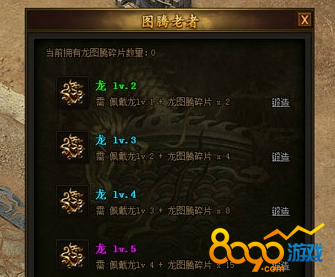 4级龙图腾=佩戴3级龙图腾+8片龙图腾碎片;