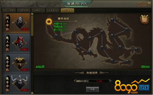 (1)VIP等级达到15级后,开启BOSS命格系统,可从激战BOSS界面进行查看;