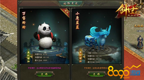 这两种灵宠都拥有各自独特的属性加成。万宝盼盼拥有物理攻击50-50、物理防御100-100和最大生命10000,同时在玩家战斗过程中,可以自动帮助拾取地面掉落的物品;小鹿蓝蓝拥有切割100000、物理攻击100-100、物理防御200-200、最大生命20000,自身拾取速度增加50%。两种宠物各有特色,玩家可以根据自身所处阶段选择不同的宠物。
