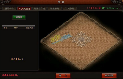 热血战纪的个人竞技场是每周二20:00~20:30开启,40级以上玩家就能进,只要进入就可以获得50礼金的奖励,击杀玩家还能获得额外的礼金奖励,排名前五的玩家更有竞技之王的称号可以获得。进入竞技场后获得一个属性增加的BUFF,使玩家的人物属性平衡,纯粹的以PK技术论输赢,人物离开竞技场后,获得的BUFF将会消失。