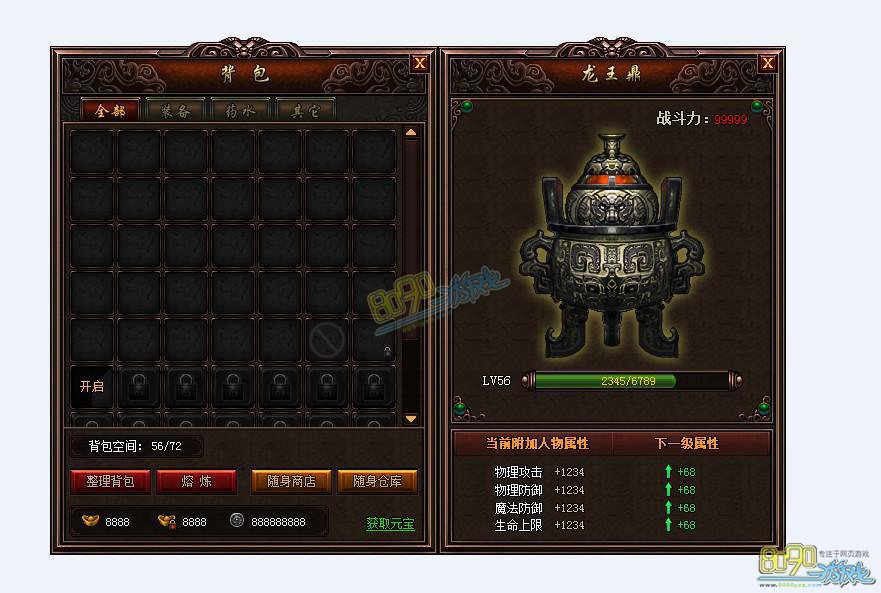 龙王鼎每熔炼掉一件装备,就会获得对应的经验值,经验值达到对应的数值龙王鼎就会升级。龙王鼎的等级越高,给与玩家的属性增益越高而装备的品质越高,获得的经验值越高。