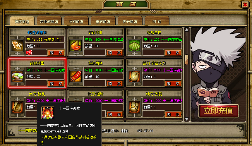 节日期间可以收集十一国庆徽章,兑换各种极品道具。