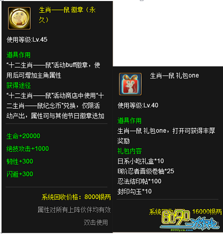 2. 作用:收集活动道具(生肖-鼠金币)可在节日商店中兑换各类极品道具,更有永久节日BUFF可以兑换