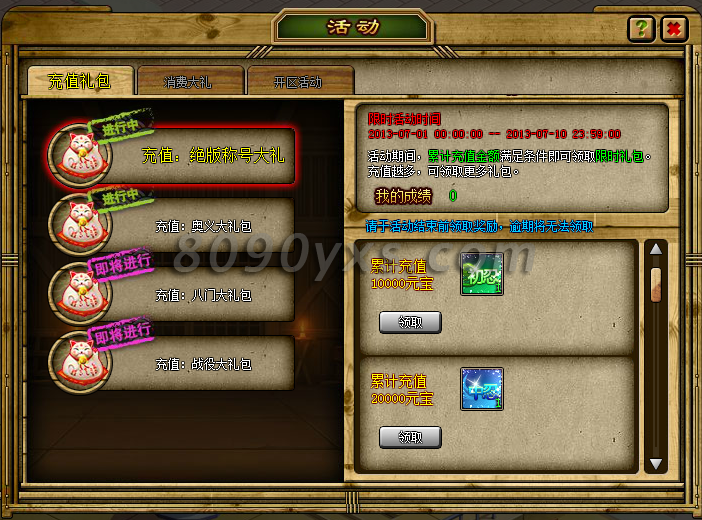 活动说明:累计充值最多的玩家,可获得珍宝奖励