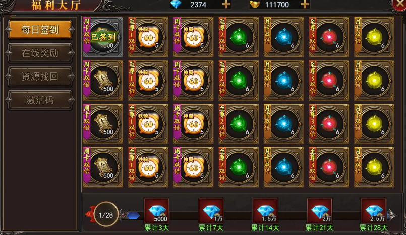 1、每日签到,领取丰厚资源!