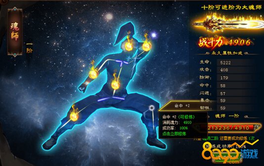魂力是一种资源,也是区别于经验—等级体系外,另外一条基础能力培养线,魂力等级的提升需要消耗魂力手动点击提升,当达到指定魂力等级需要进行试炼任务才能继续提升魂力突破后,除了属性奖励外还可以学习更强大的魂技,并开启暗器、战弩、斗铠、魂导师徽章等原著中的特色装备部件。