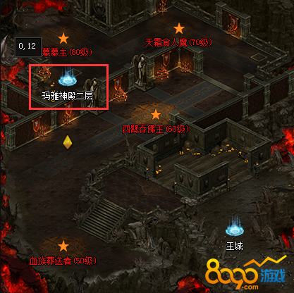 玩家前往王城(69,90)附近与NPC 玛雅神殿处对话即可进入,进入后会被传送到地图中的随机位置。
