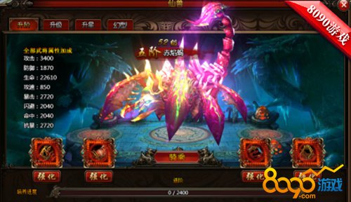 在游戏里,游戏开始会赠送一只初始仙兽,玩家可通过主界面下方的仙兽图标进入仙兽界面,提升坐骑的等阶,不仅可改变坐骑的形象,让坐骑变得更加炫酷,同时,还可以获得大量的属性加成哦!