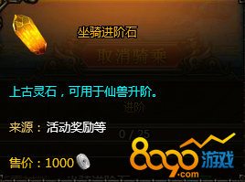 神道在游戏的开始就会赠送一只初始的仙兽,然后了通过给仙兽升阶,就可以改变仙兽的外形了。仙兽升阶需要限号坐骑进阶石,可以通过万仙劫获得。