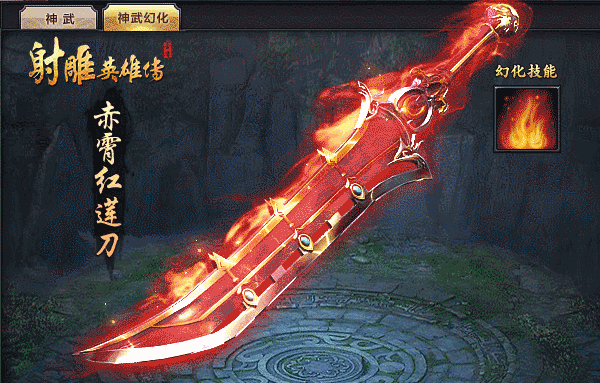 《射雕英雄传》里,开启全新神武幻化“赤霄红莲”。 昔日汉高祖斩白蛇起义,所持之剑刃如霜雪,名为“赤霄”。“红莲”为八寒地狱之一,因在此地狱受难者,身受严寒逼切,其身变成红赤之色,皮肤冻裂,故称红莲地狱。神武幻化“赤霄红莲剑”精钢所铸,煞气充溢,“赤霄红莲棍”通体赤红,望之若焚,“赤霄红莲刀”威猛霸气,业火缭绕。侠士们参与“珍珑棋局”活动便有机会获得“赤霄红莲”神武幻化,激活神武还可获得专属幻化技能“红莲业火”。